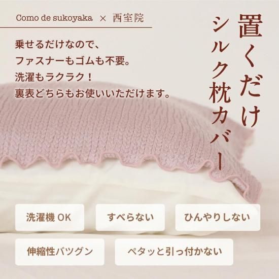 シルク100%の糸で編み上げた置くだけ枕カバー。サッと外せてサッと付けられる簡単枕カバー。